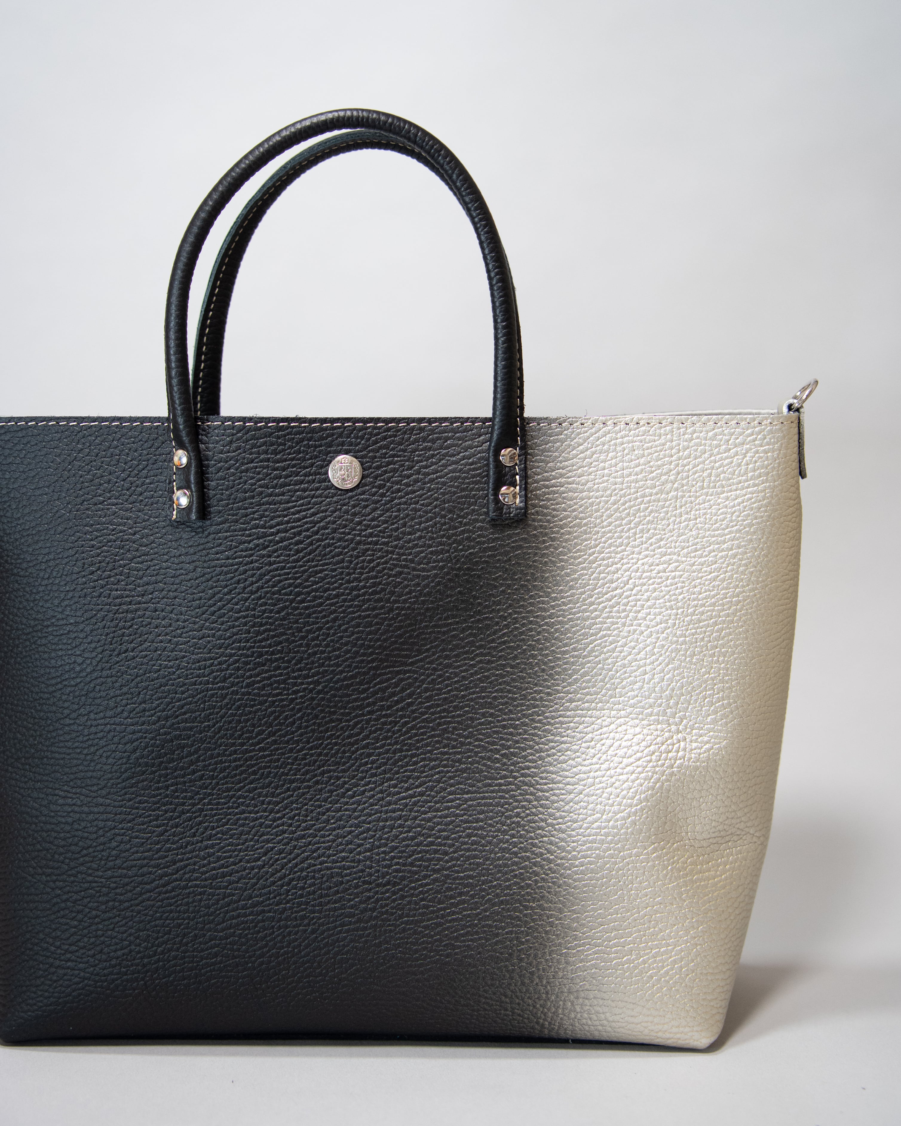 SOMEA brume 幽玄 (黒×白金) 箔ぼかし レザートートM ショルダーストラップ付