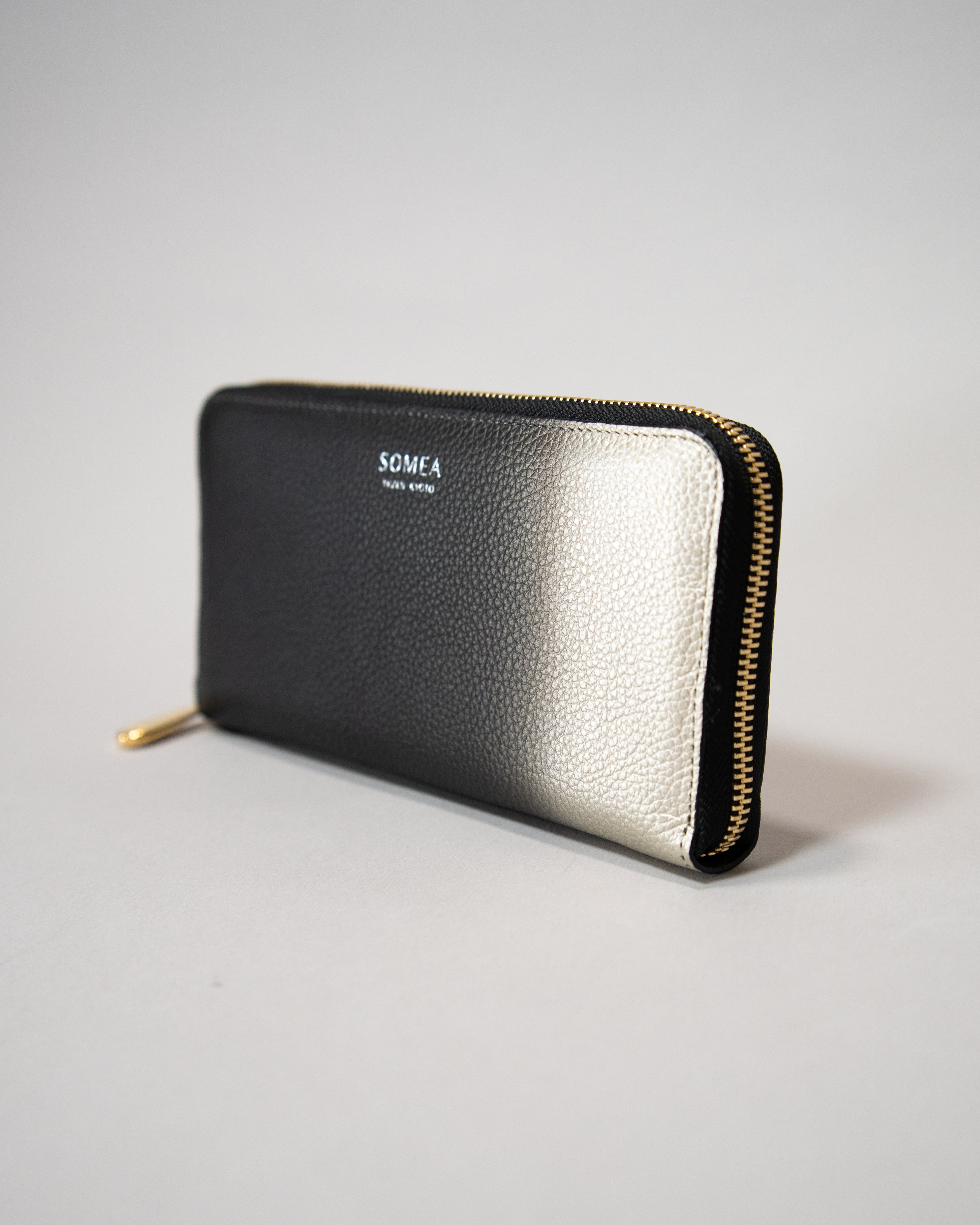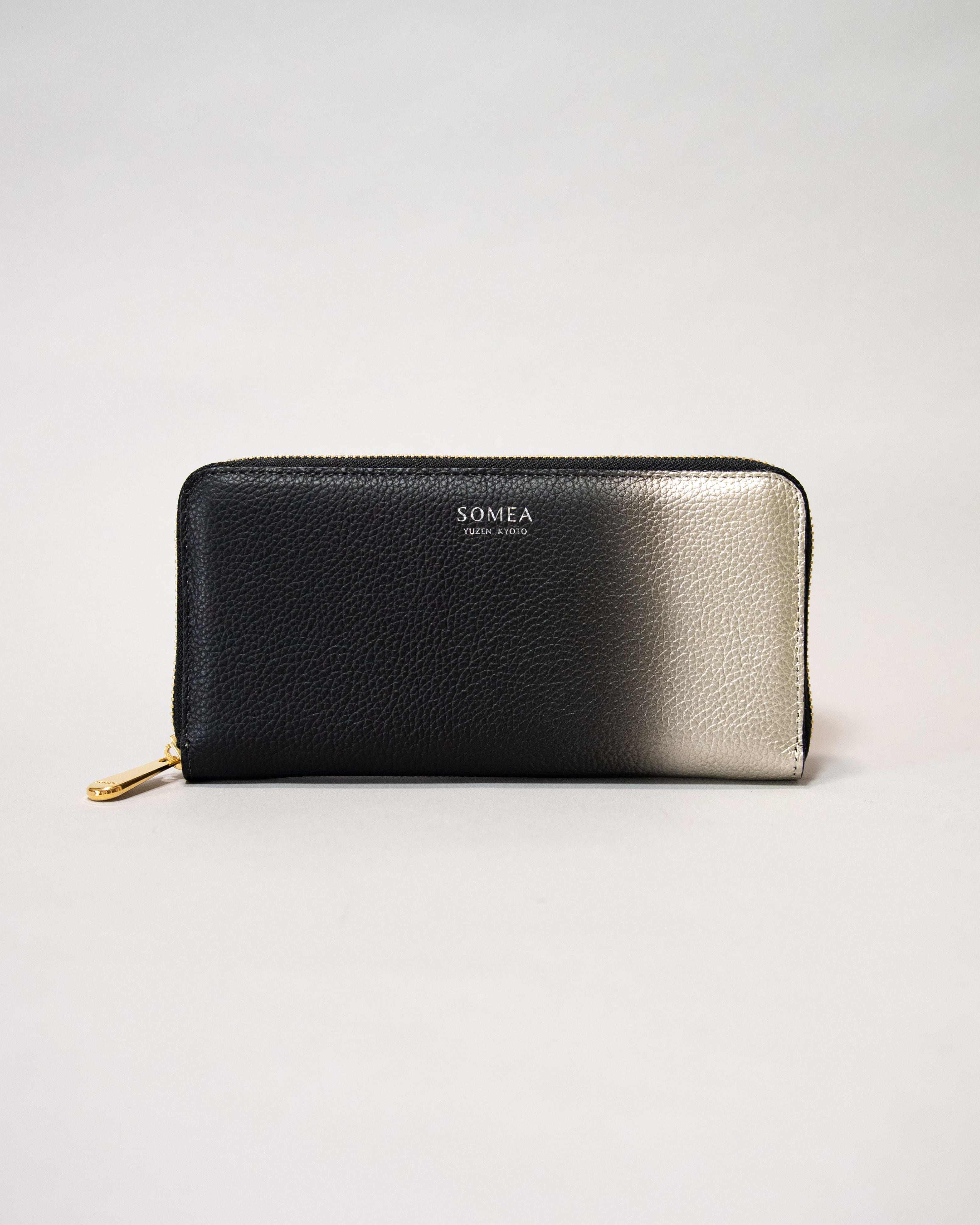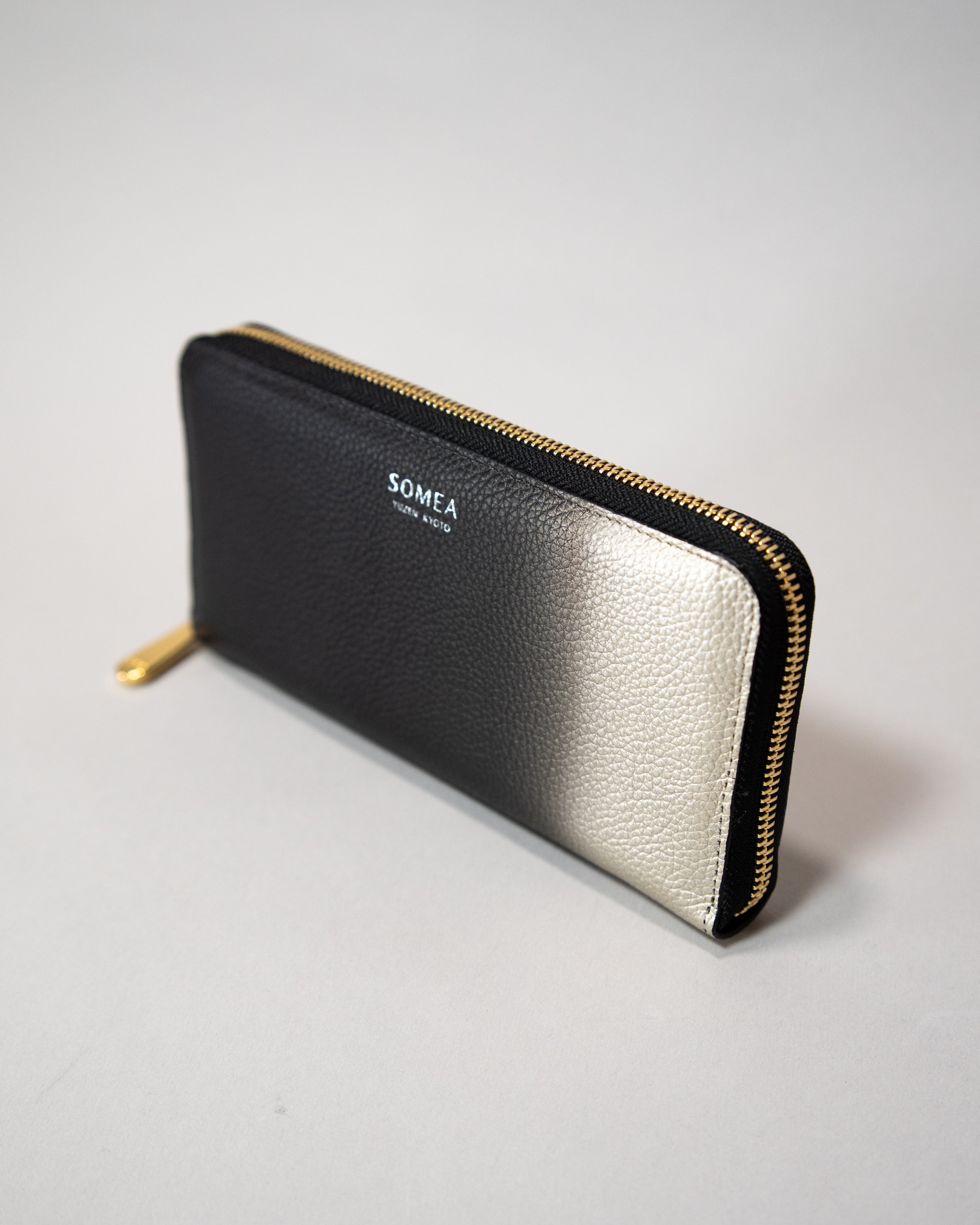 [規格外品] 1点のみ SOMEA brume 箔ぼかし 幽玄 (黒×白金) 長財布
