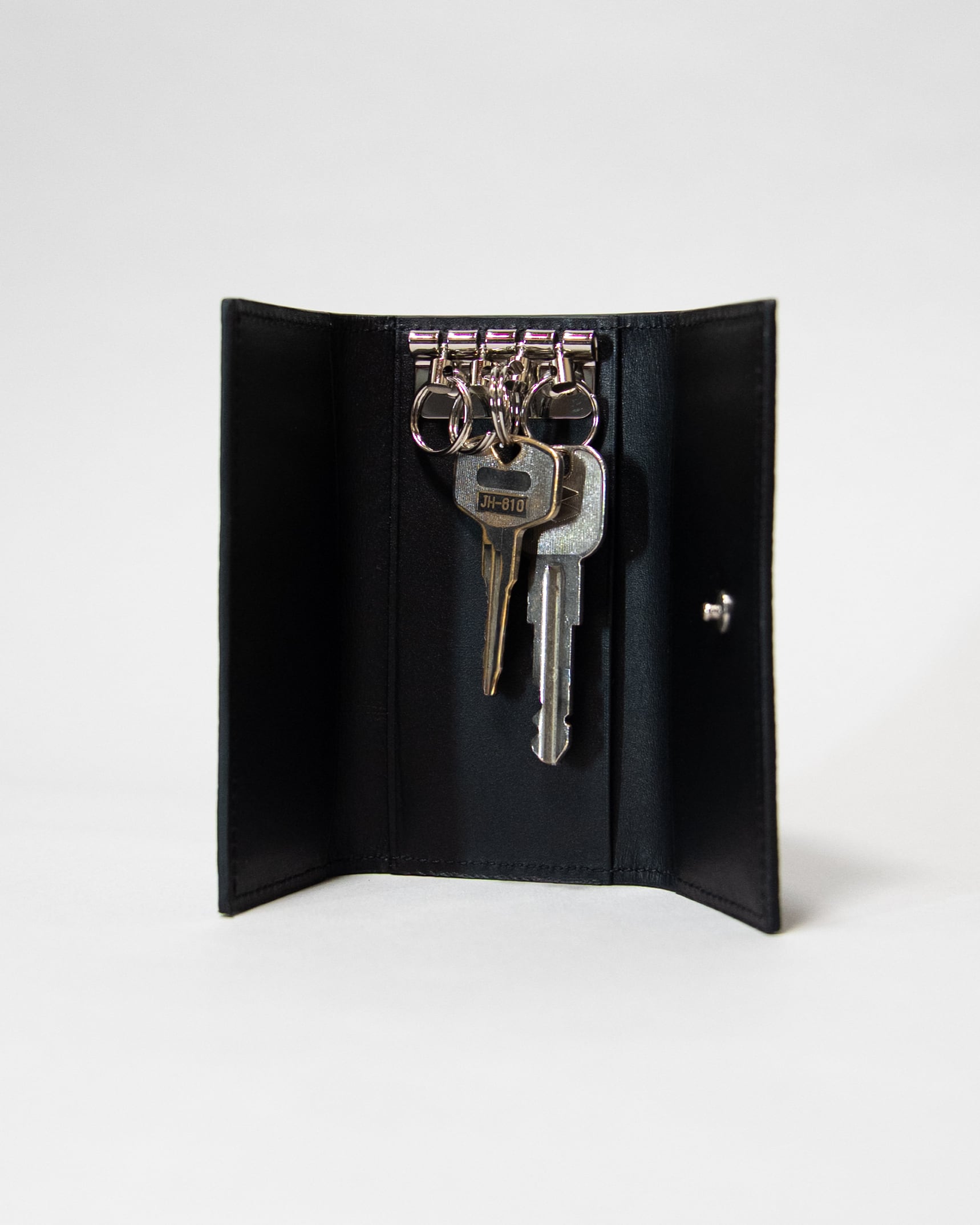流行に左右されない、スタンダードな4連キーケースです。スリムなデザインでバッグの中でもかさばらず、持ち運びにも便利です。使い勝手が良く、男女問わず幅広いシーンでお使いいただけます。